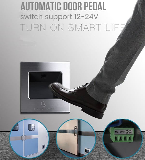 Khách hàngCông tắc bàn đạp hỗ trợ cho cửa tự động 12-24V HPS- 219TSử dụng cảm biến kích hoạt quang điện để hỗ trợ mở cửa bằng chân, được cố định ở phần dưới của tường. ★ Phù hợp với: Văn phòng, nhà riêng, bệnh viện, trung tâm thương mại, ngân hàng… Thường được sử dụng trong các trường hợp không được phép chạm tay trực tiếp để đảm bảo môi trường trong sạch, chẳng hạn như vận hành các phòng sạch trong bệnh viện và các ngành sản xuất thực phẩm.★ Mở khóa bằng: chân mà không cần chạm tay.★ Loại cửa phù hợp: Cửa kính 2 cánh, 4 cánh, .. ★ Kết nối với: với hệ thống mở cửa tự động ★ Chế độ hoạt động: nhận tín hiệu bằng cách ngắt tia hồng ngoại (bằng chân)★ Chất liệu: Hợp kim nhôm chất liệu cao★Relay output: < 45ms★ Kích thước: 186x175x53mm★ Điện áp: 12-30V★ Video dự án thực tế: