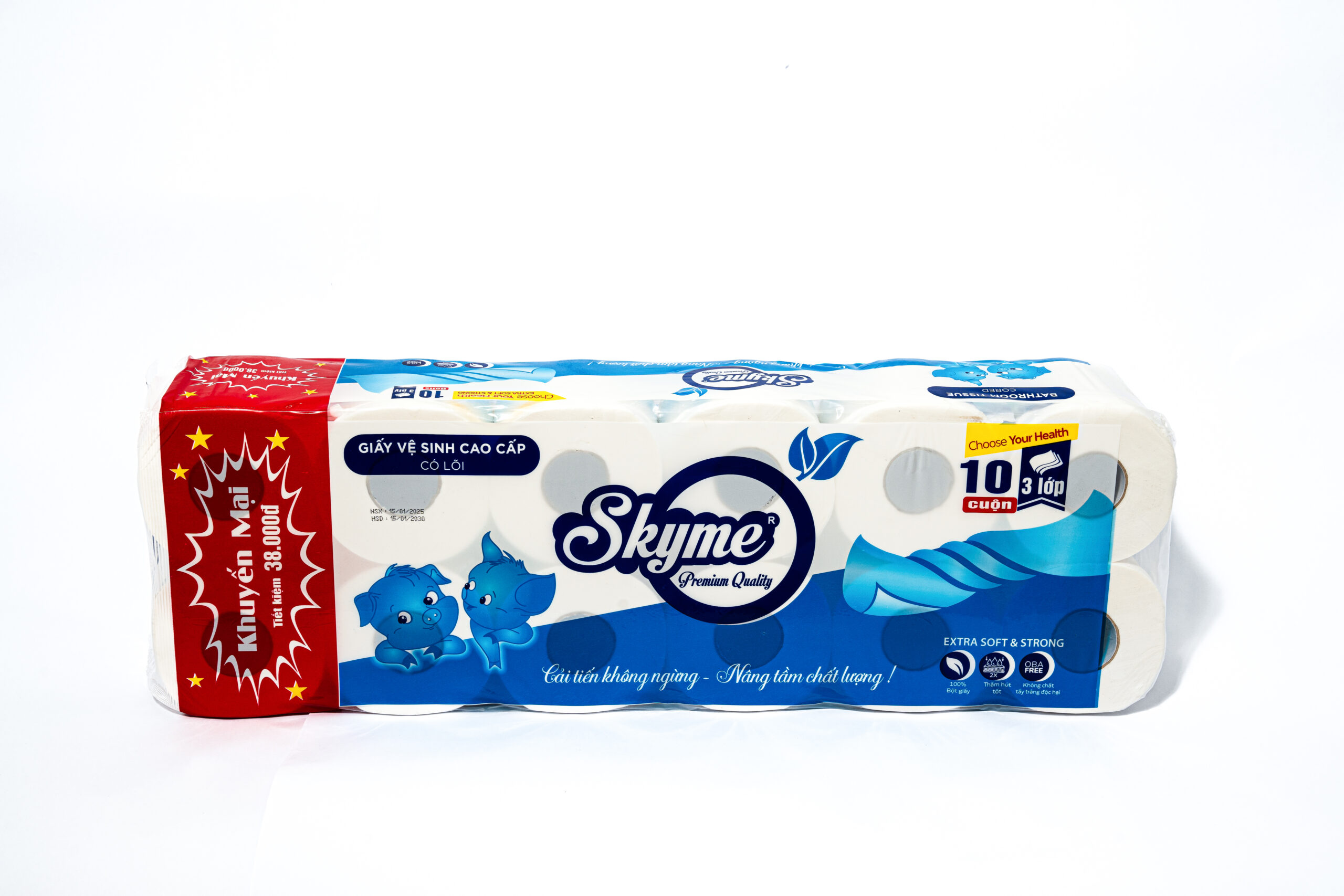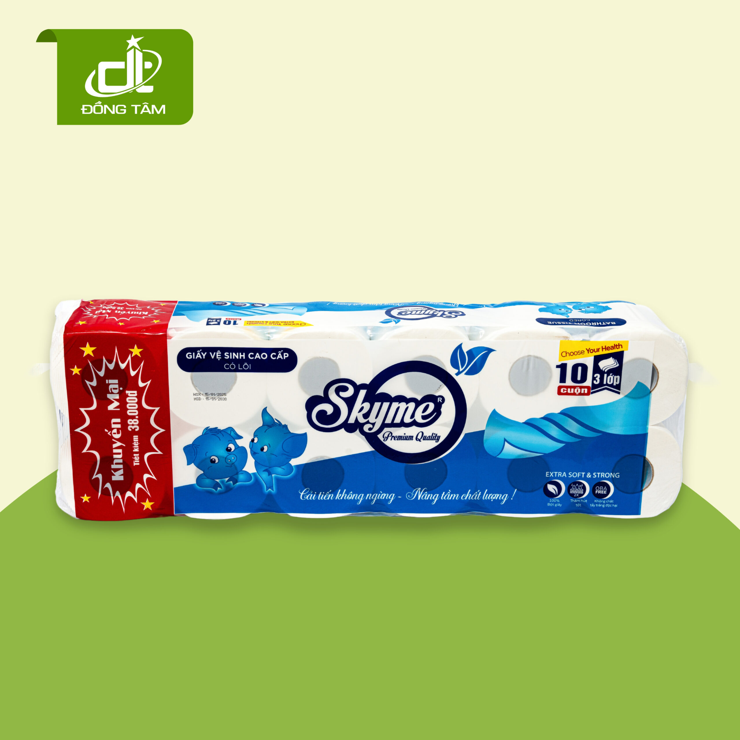 Thông tin sản phẩm giấy vệ sinh Pulppy 10 cuộn 2 lớp Chất liệu: 100% bột giấy nhập khẩu Định lượng: 18 ± 2 g/m² Đóng gói: 10 cuộn x 2 lớp Lõi giấy: có Kích thước tờ: 100mm x 100mm Hạn sử dụng: 5 năm kể từ ngày sản xuất